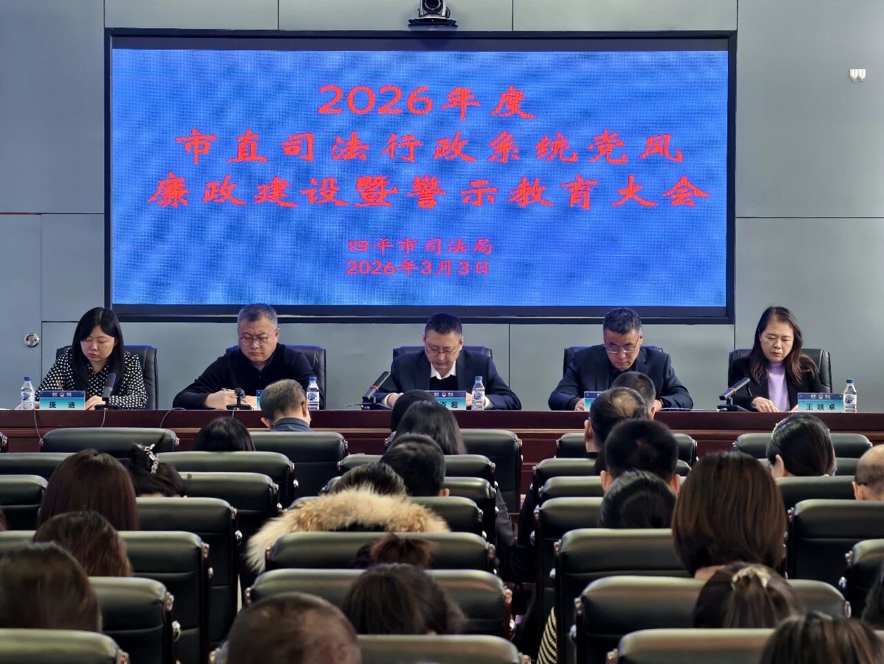 3月3日,市直司法行政系统党风廉政建设暨警示教育大会召开,会议以习近平新时代中国特色社会主义思想为指导,深入贯彻党的二十大和二十届历次全会精神,全面落实二十届中央纪委五次全会、省纪委十二届五次全会和市纪委八届六次全会部署,回顾2025年工作,部署2026年任务。局党组成员、政治部主任王轶卓主持,局党组书记、局长卢百超参加会议并讲话。